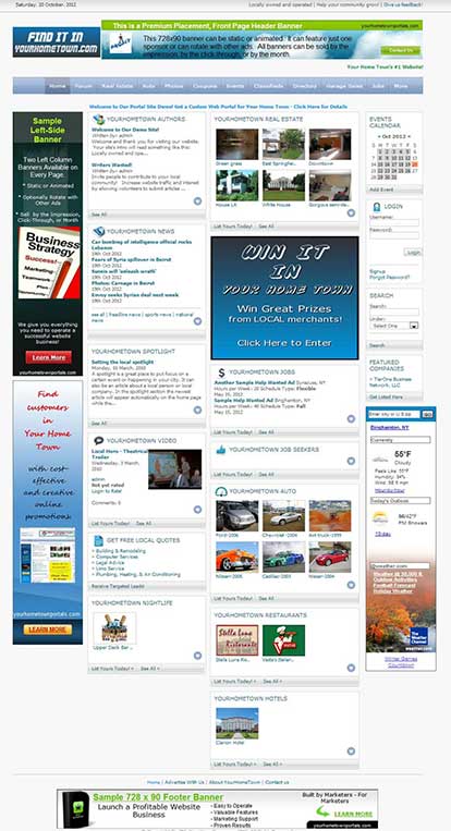 We would set up a site for you (similar to www.finditinyourhometown.com, but customized for your area). It could be called www.finditinYOURCITYNAME.com or any other available name of your choice. You would own and operate the business and you would collect 100% of all incoming listing, banner, and other sponsorship revenues. We only charge you an affordable flat-rate monthly licensing fee.